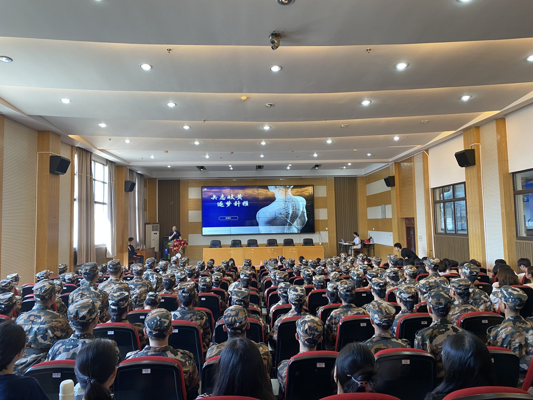 刘明军教授为师生们带来了精彩的专题分享。他结合自身丰富的临床实践,分享了“针刺四关穴治疗痉挛抽搐”“推拿治疗落枕”“中医整复手法治疗颞下颌关节脱位”等生动案例,以中医立竿见影的神奇疗效,在针灸推拿学新生心中深深植下了探索中医奥秘、热爱针灸推拿学专业的种子,为新生们的专业学习提供了宝贵建议